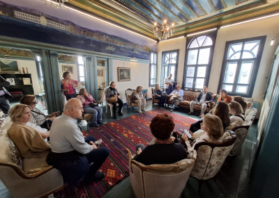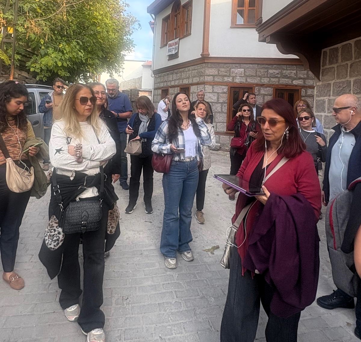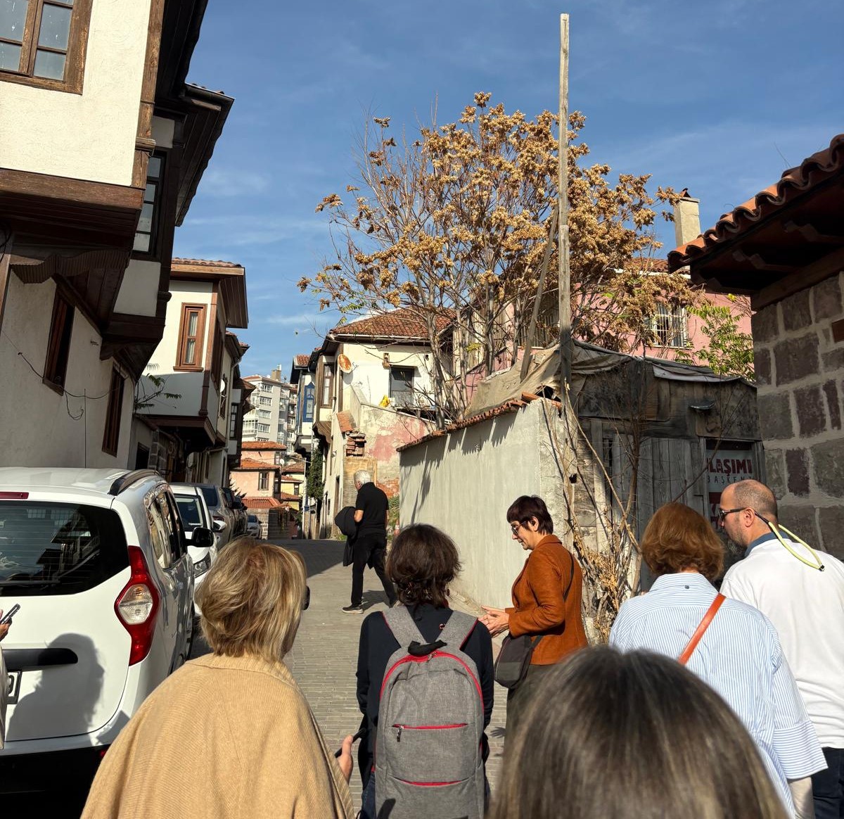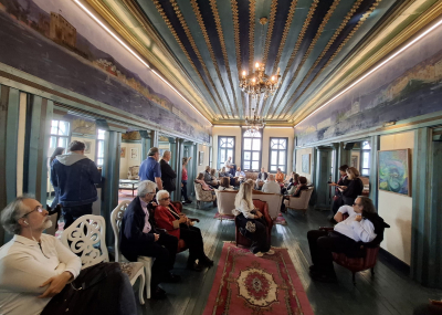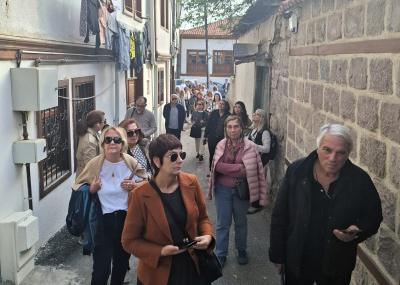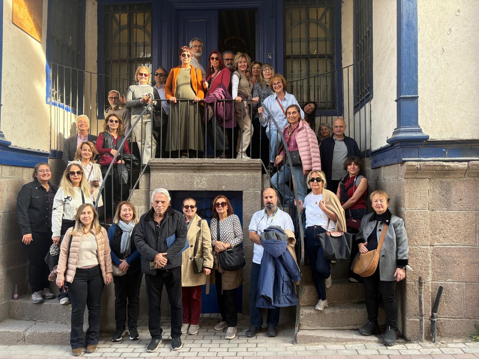 Tarihi Hamam Önündeki St Petesburg Meydanına bakan ilk Rus elçilik binası önünden başlayan geziye katılanlar, daha sonra bizler için kapısını açan tarihi Rus Hastanesini ziyaret etti. Kurtuluş savaşı sırasında bizlere birçok konuda yardımcı olan Ruslar tarafından yine Hamamönü’nde kurulan Hastane, cepheden gelen yaralı askerlerin tedavisi için kullanılıyordu. Atatürk’ün sık sık ziyaret ederek, yaralı askerlerle sohbet ettiği hastaneden sonra, Ankara tarihine ışık tutan Dr. Bülent Kalıpçı’yı, Kalıpçızade konağında ziyaret ettik, kendisinden, özenle hazırlanmış ikramları eşliğinde, Ankara ve doktorluk anılarını dinledik. Bilgilendirmeleri için teşekkür ettik.