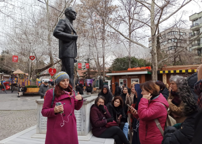 Gezimizin hedefinde, başkentin gözde semtlerinden Kavaklıdere’yi yakından tanımak, semte kimliğini veren yapılar, ticarethaneler, kültür-sanat mekanları hakkında bilgi vermek vardı. Tunalı Hilmi caddesi üzerindeki Üniversite Apartmanı önünde başlayan buluşma, Kuğulu Park, Sevda Cenap And Evi, İlbank Blokları, Hayat Apartmanı, Güniz Sokak, Demirel evi ve Fikir İşçileri Kooperatifi rotasında devam etti. Gezimiz, Sevgi Soysal’ın romanlarını yazdığı Sandıkçıoğlu Apartmanı’nın şimdi kafeye dönüşen giriş katında sona erdi. Kafede, günün yorgunluğu atılırken, çay eşliğinde gezideki bilgiler pekiştirildi.