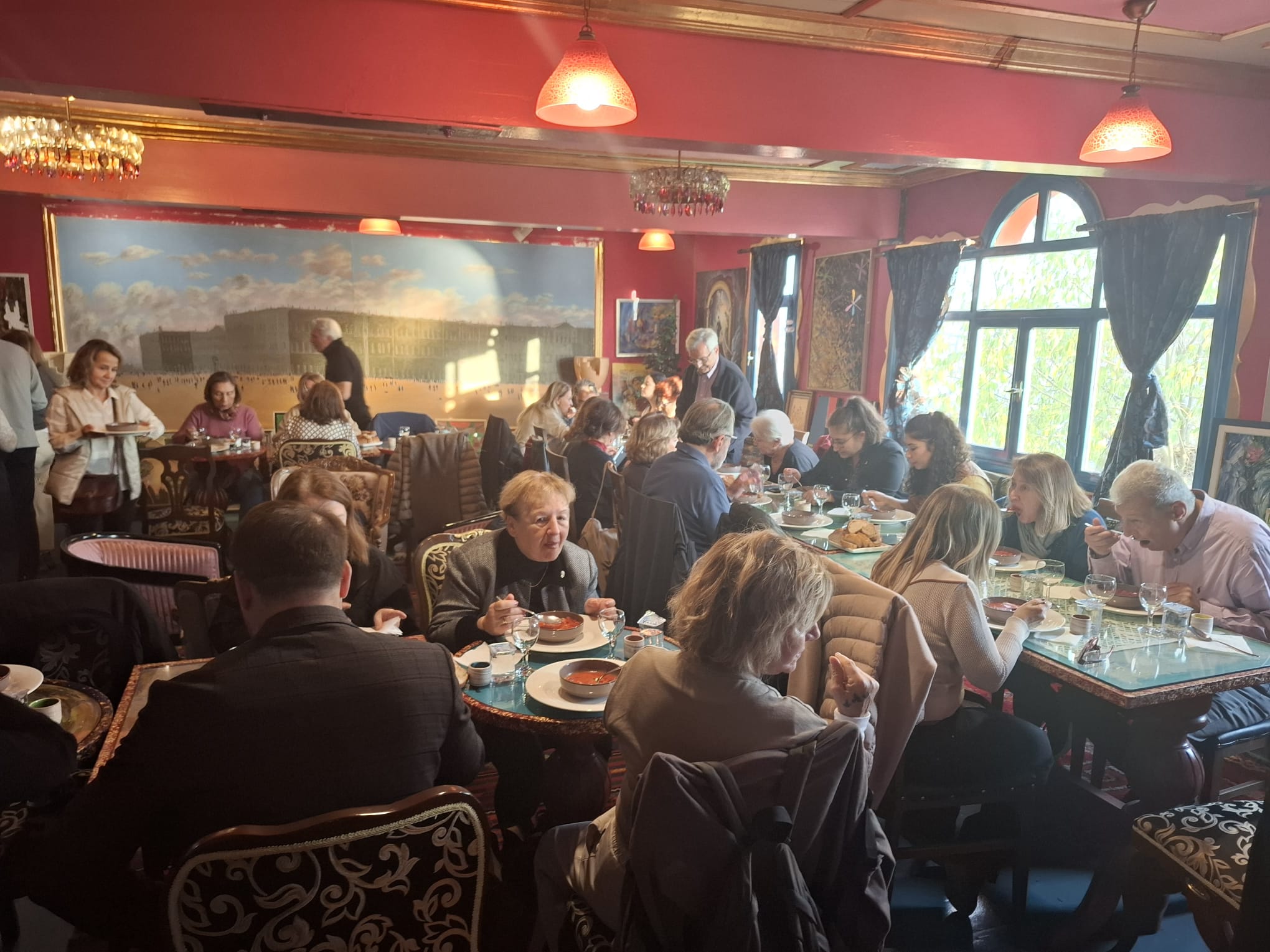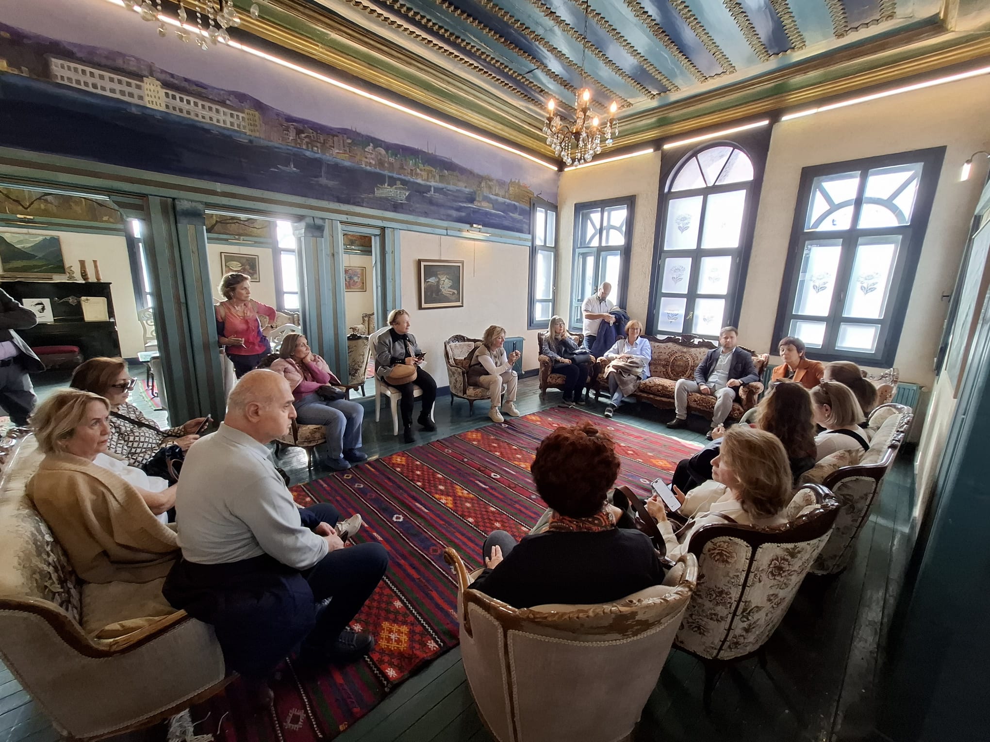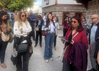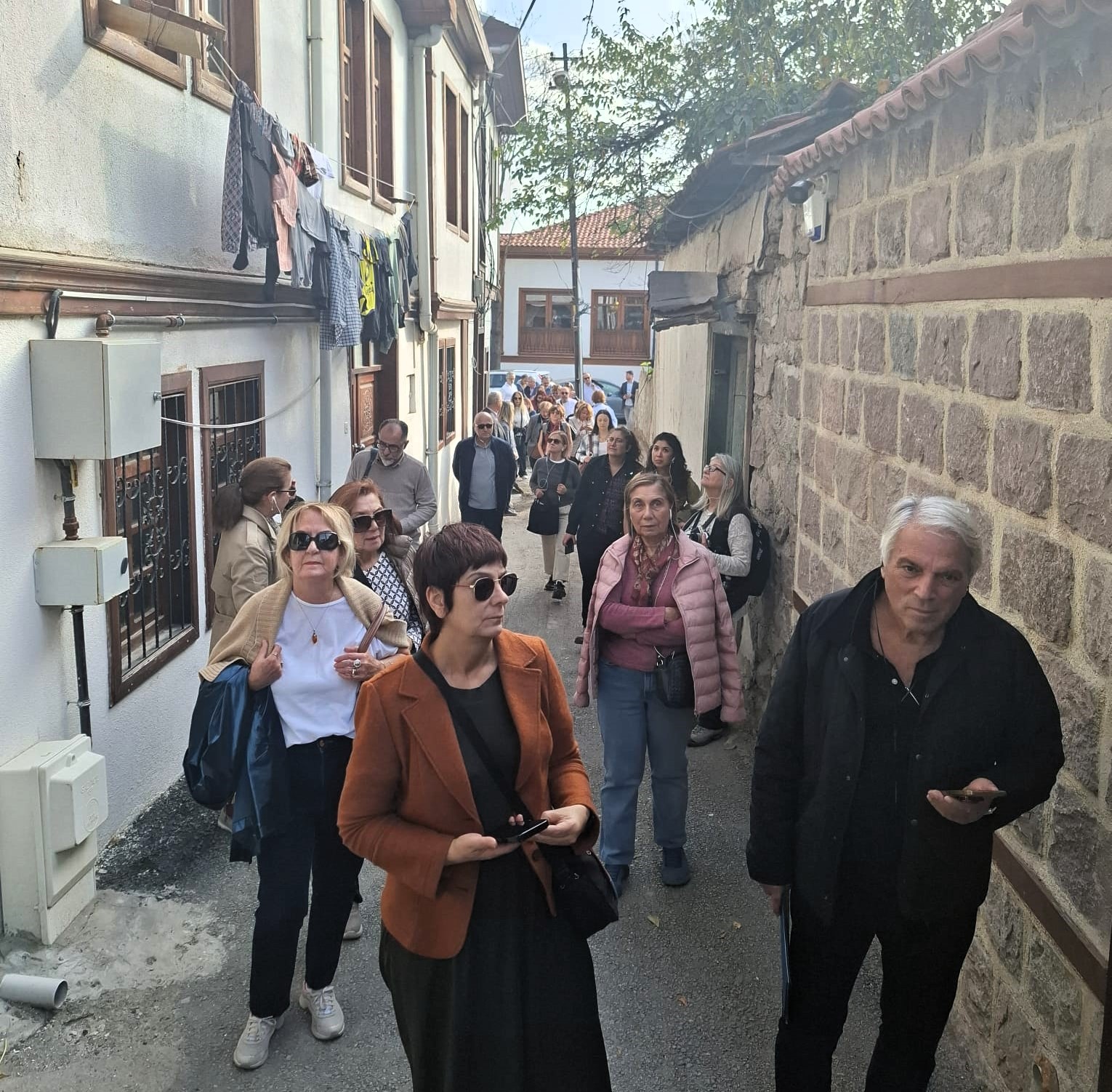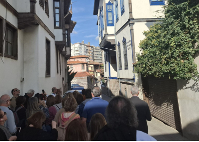 Tarihi Hamam Önündeki St Petesburg Meydanına bakan ilk Rus elçilik binası önünden başlayan geziye katılanlar, daha sonra bizler için kapısını açan tarihi Rus Hastanesini ziyaret etti. Kurtuluş savaşı sırasında bizlere birçok konuda yardımcı olan Ruslar tarafından yine Hamamönü’nde kurulan Hastane, cepheden gelen yaralı askerlerin tedavisi için kullanılıyordu. Atatürk’ün sık sık ziyaret ederek, yaralı askerlerle sohbet ettiği hastaneden sonra, Ankara tarihine ışık tutan Dr. Bülent Kalıpçı’yı, Kalıpçızade konağında ziyaret ettik, kendisinden, özenle hazırlanmış ikramları eşliğinde, Ankara ve doktorluk anılarını dinledik. Bilgilendirmeleri için teşekkür ettik.